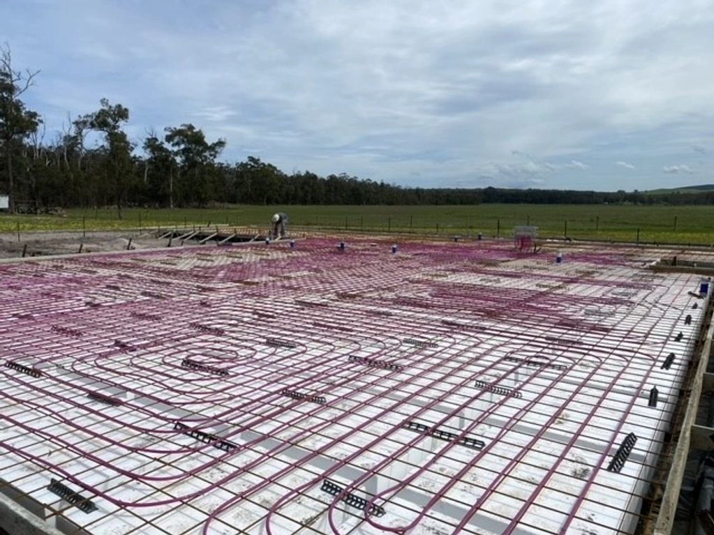 Large 12 circuit hydronic slab heating project prior to the concrete pour in Maffra.